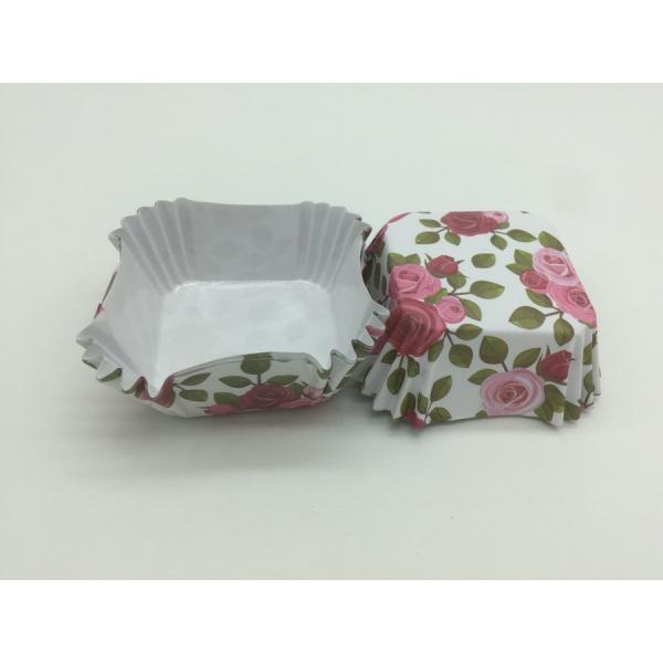 Rose Pattern Greaseproof Paper Muffin Cases , Floral Square Paper Cupcake Liners Images |